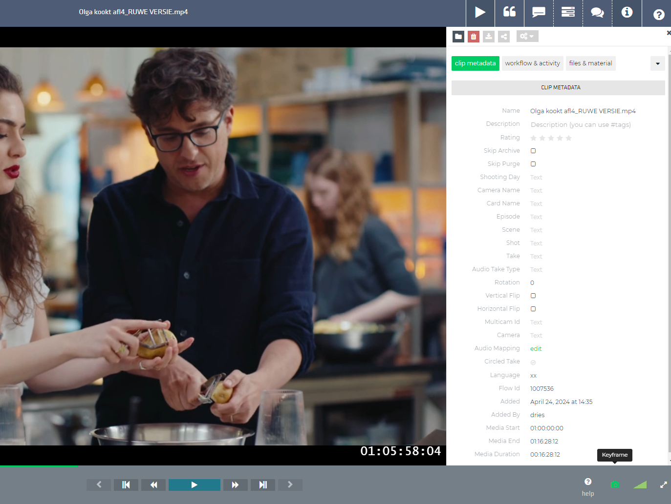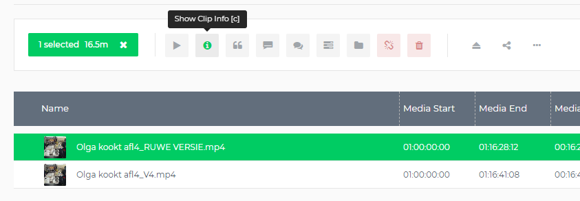 Ga naar de video waaruit je een still wil nemen en ga naar de clip info